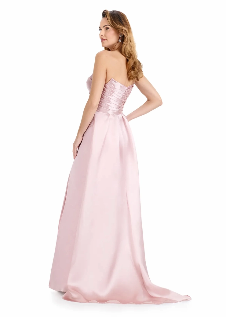Make a statement in the ASHLEYlauren E12126 evening gown, an elegant choice for formal events, red carpet appearances, or as a timeless mother of the bride dress. Crafted from luxurious satin organza, this gown features a flattering sweetheart neckline, pleated bodice, and soft ruching that drapes into a flowing A-line silhouette. Available in Mauve and Jade, this style exudes sophisticated glamour.