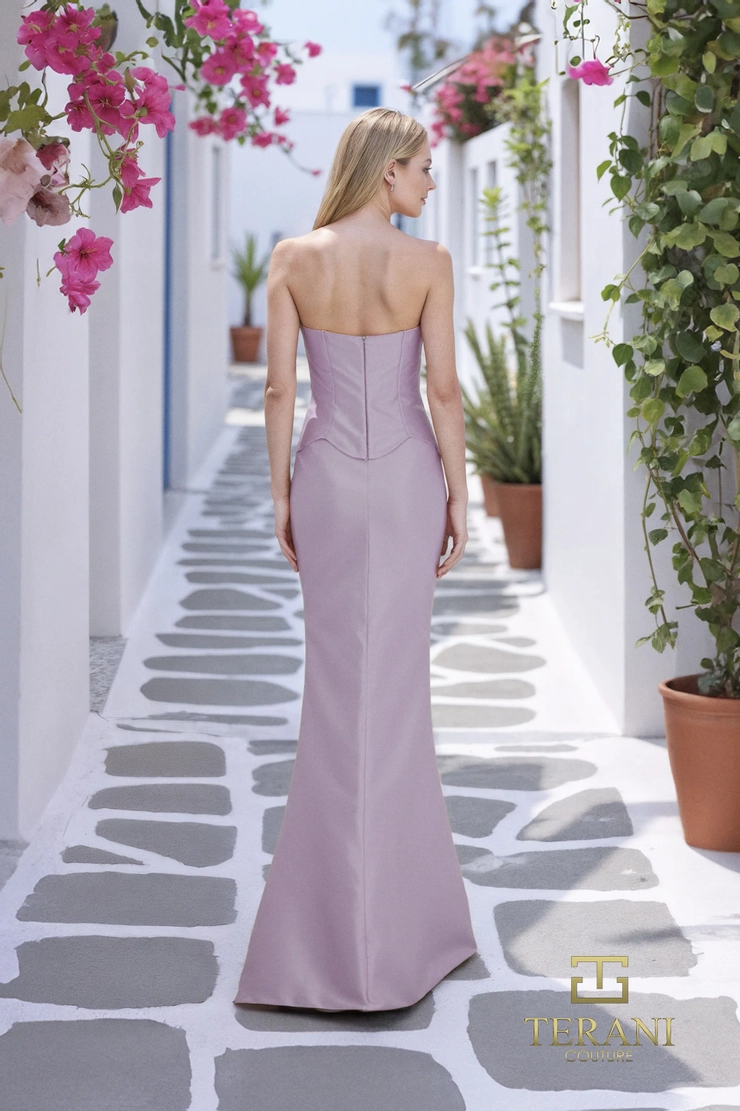Step into refined glamour with the 261E6292 Fitted Sheath Evening Gown, a design that beautifully sculpts the silhouette. The sweetheart neckline frames the décolletage with timeless allure, while the sleeveless bodice enhances its sleek, modern profile. Crafted in luxurious mikado fabric, this gown delivers a structured fit that flatters from bodice to hem, flowing into a graceful 46-inch length from the waist. The fitted sheath cut ensures a polished finish, balanced by the clean lines of the center back zipper and hook-and-eye closure. Available in striking shades of gold, orchid, and hot pink, this gown offers bold yet sophisticated options for formal galas, black-tie weddings, and high-fashion events. Designed for the woman who embraces elegance with confidence, it captures Terani Couture’s signature balance of luxury and simplicity.