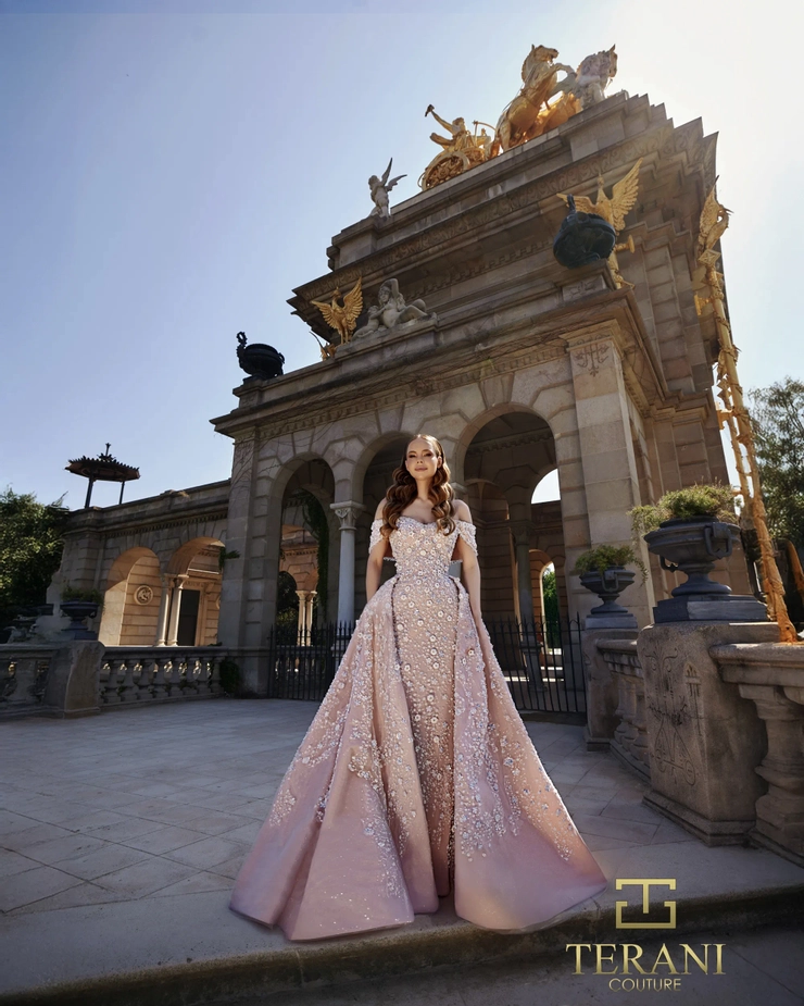 Step into pure pageantry glamour with the Terani Couture 261GL6659 ballgown. This breathtaking design features an off-the-shoulder neckline that frames the décolletage with timeless grace. Crafted from luxurious beaded tulle, the gown shimmers with intricate embellishments that cascade down its voluminous skirt, catching the light from every angle. The fitted bodice cinches the waist before flowing into a dramatic full ballgown silhouette, offering both regal presence and feminine elegance. Measuring 46 inches from waist to hem, it ensures sweeping impact with every step. A concealed center-back zipper with hook-and-eye closure completes the gown with a secure and seamless finish. Available in enchanting shades of pink blue, navy, and light sage, this ballgown is the ultimate statement piece for pageants, red-carpet moments, and gala events where nothing less than unforgettable will do.