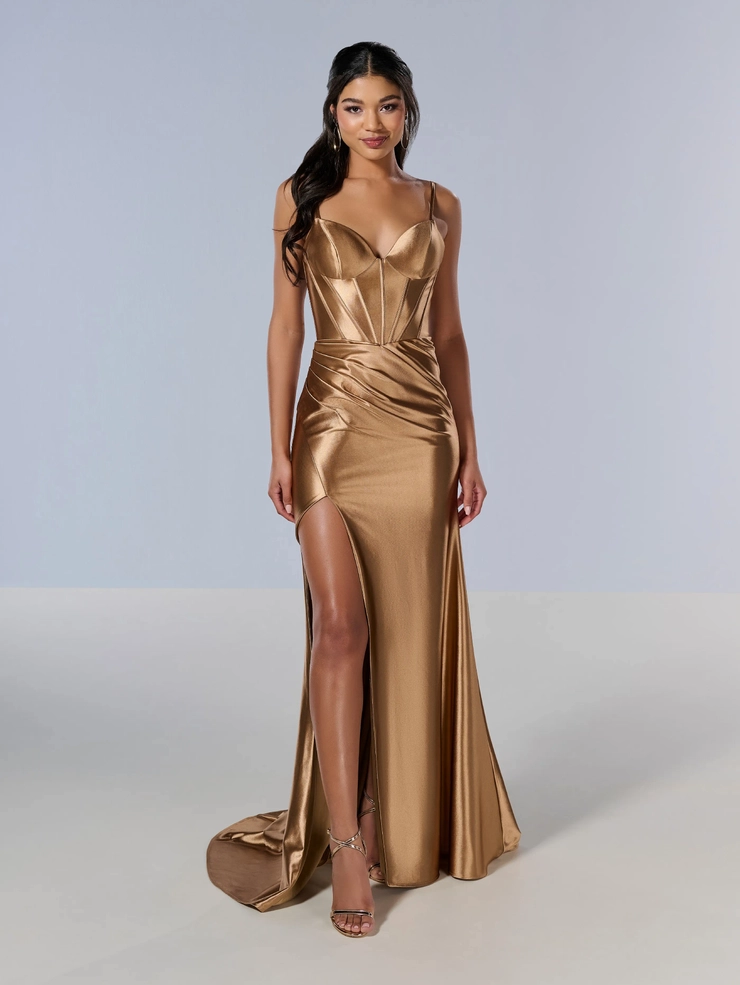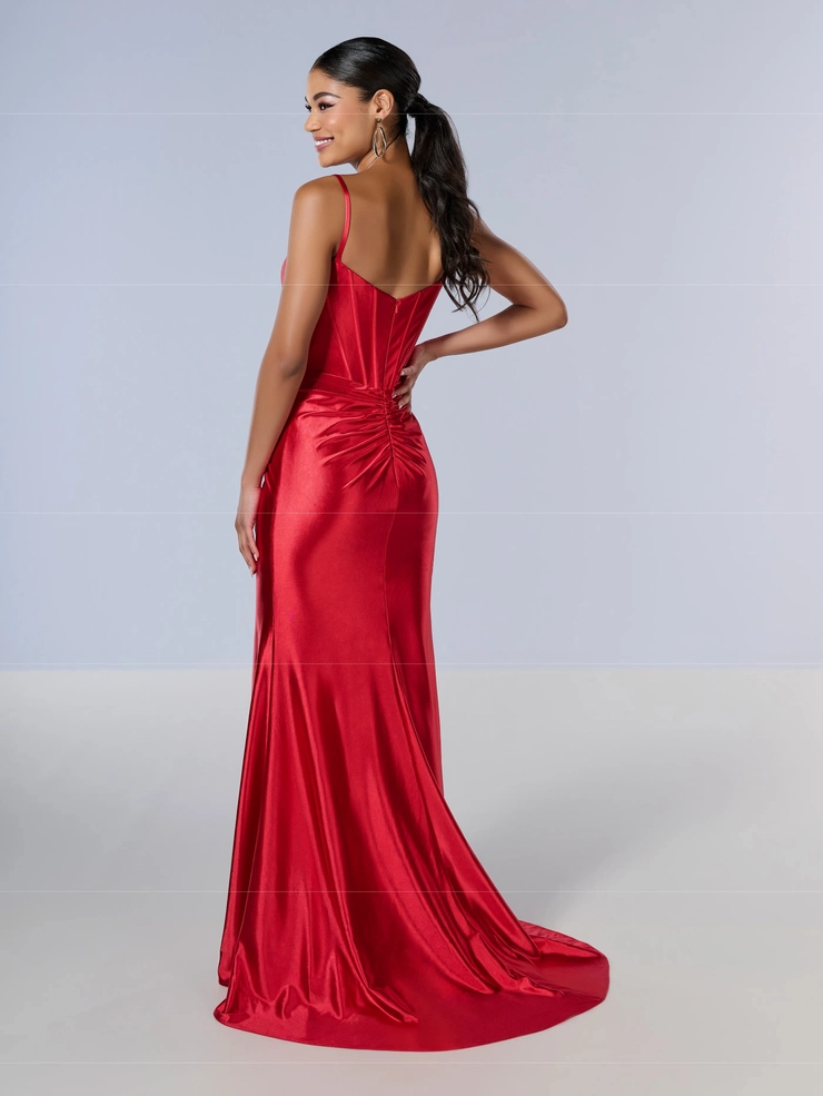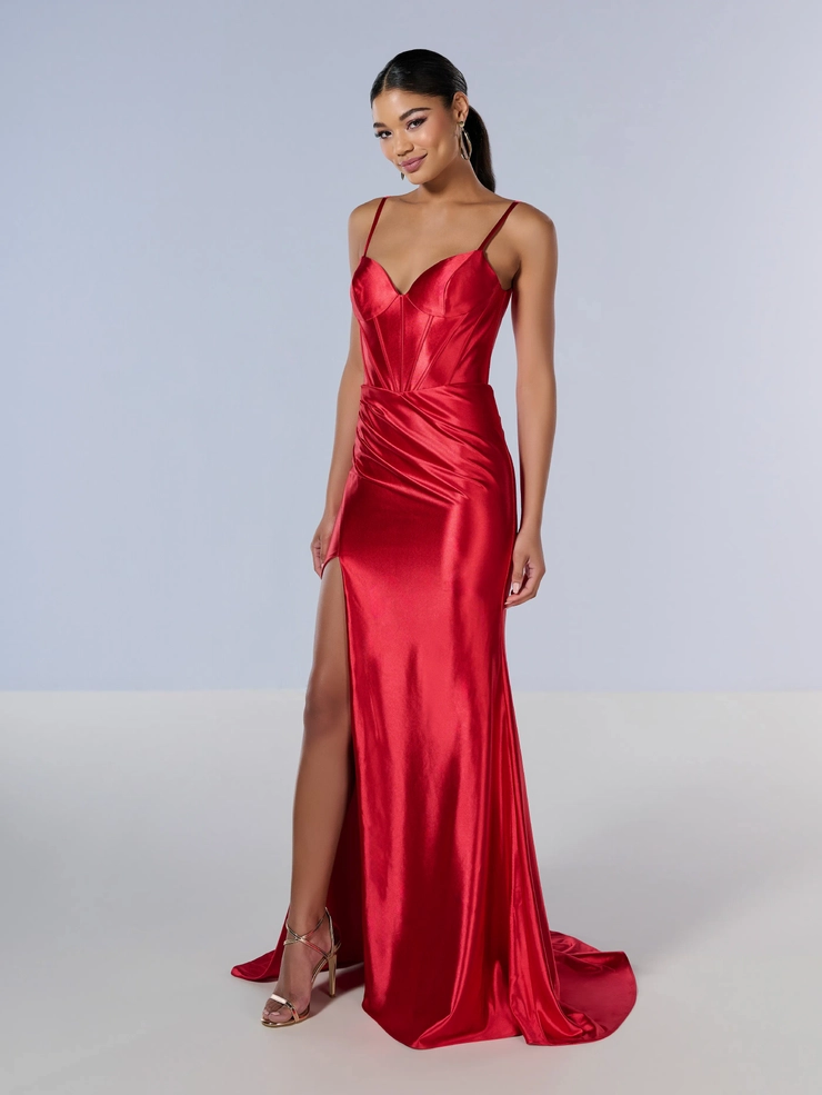 A unique slim fitted dress made out of jersey material topped off with a spaghetti strap neckline.
