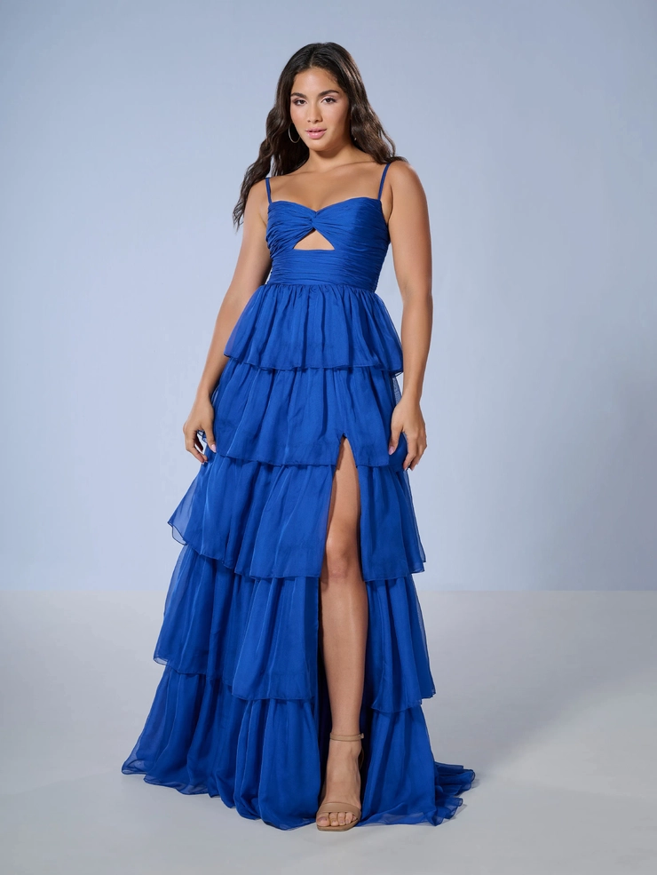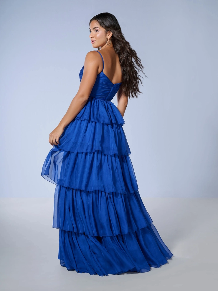 This gorgeous A-line fitted gown is made out of silky chiffon, and topped off with a sweetheart neckline.